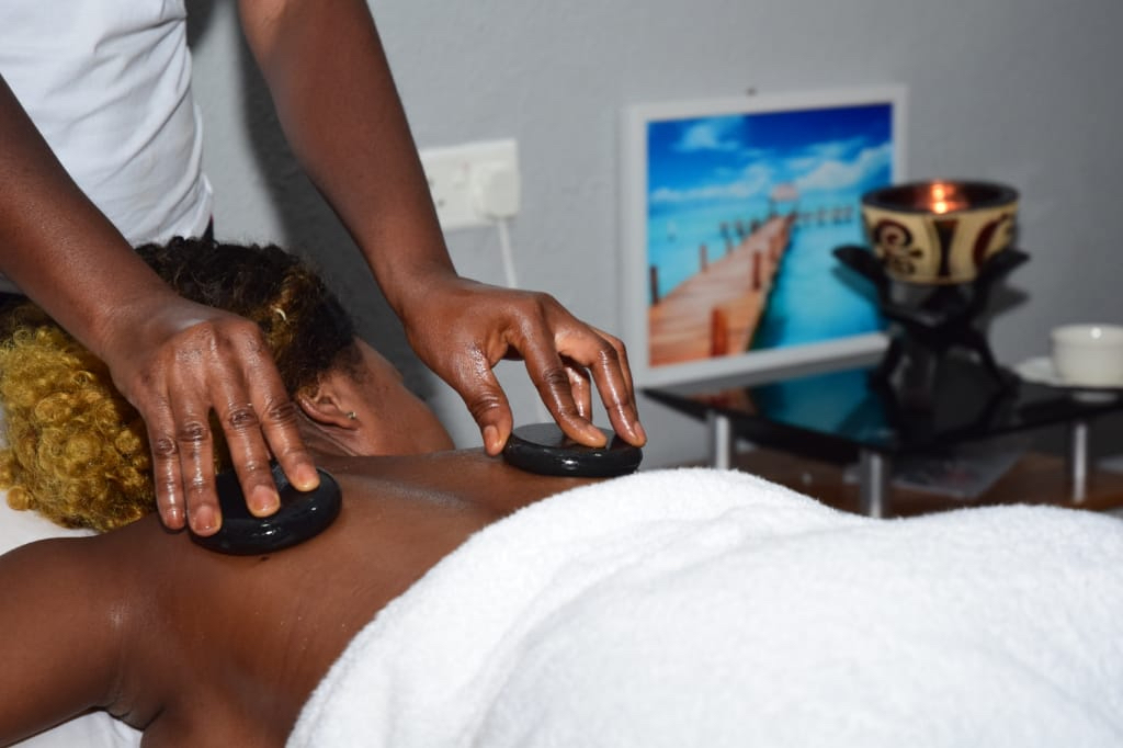 Massage helps to decrease stress by lowering the heart rate, and relaxing muscles and releasing endorphins. massage increases temperature in the body and promote relaxation. when the body relaxes , heart rate is reduced.